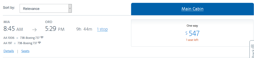 For all flights, American Airlines is honoring its “last seat” pledge and making seats available to AAdvantage members at the “standard” price. These awards are very expensive, at 20,000 points. Normally I’d never recommend booking one of these, but this is actually solid value for an “hurricane flight” at over 2.7 cents per mile in value. As of this writing, there is still one seat available to each of Dallas and Chicago on 9/6/17.